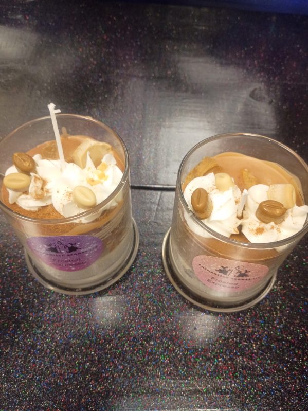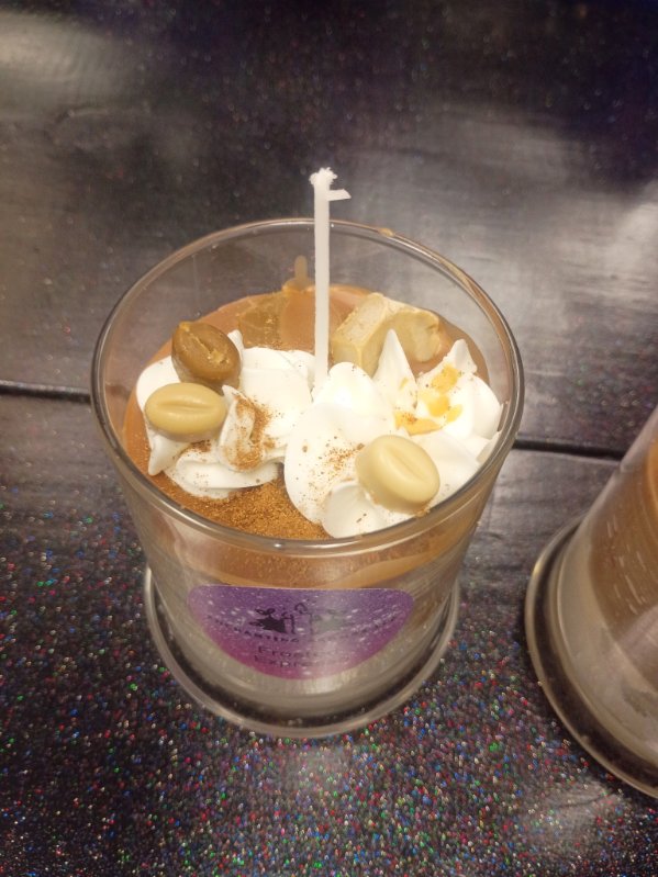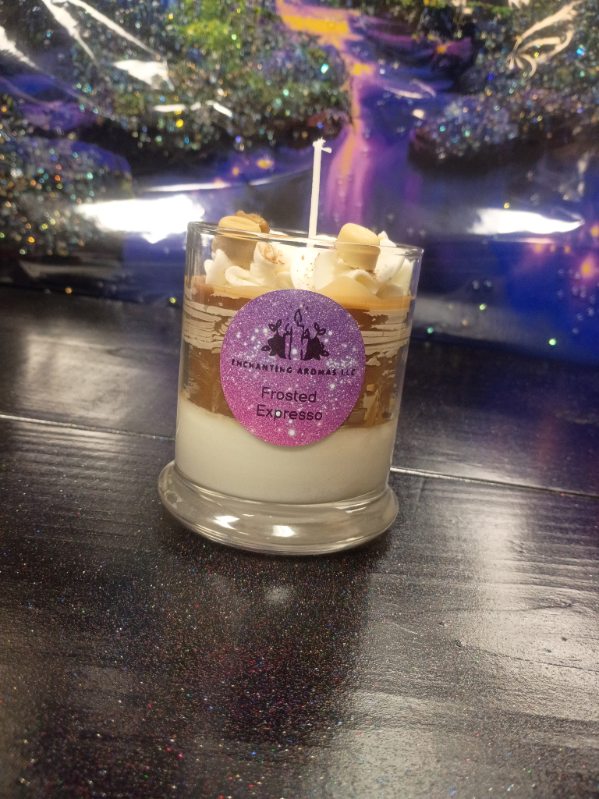 Each candle is hand-poured into decorative coffee ice cubes, giving it a unique, café-inspired look. The top is finished with a swirl of creamy whipped “frosting” and accented with realistic decorative coffee beans, making it as beautiful as it is aromatic.